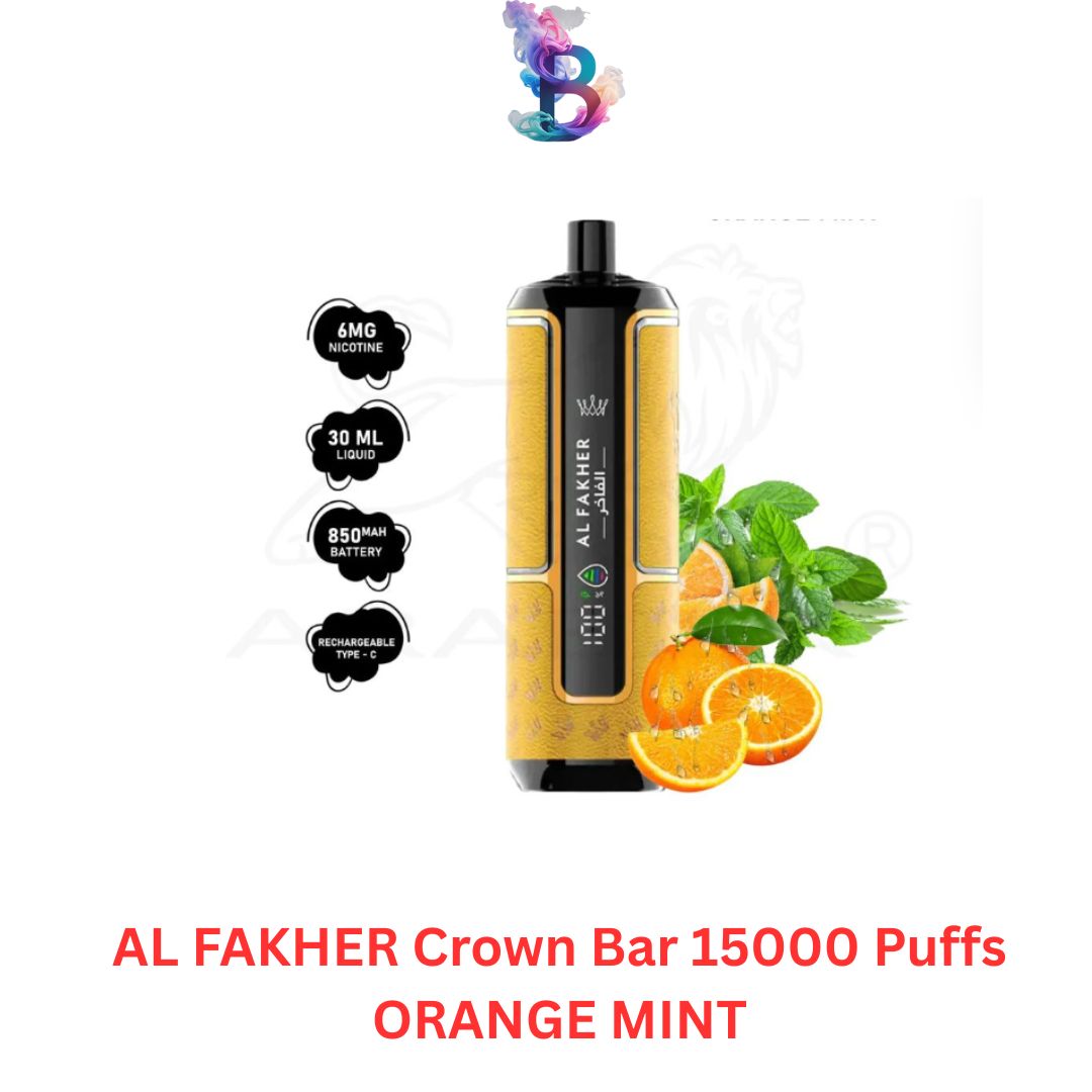 The AL FAKHER Crown Bar 15000 Puffs ORANGE MINT Disposable Vape offers a premium vaping experience that fuses taste, technology, and convenience. With its high puff capacity, rechargeable battery, and signature flavor blend, it’s the ultimate choice for those who crave a refreshing yet powerful vape session. Elevate your vaping moments with AL FAKHER — where quality meets satisfaction.