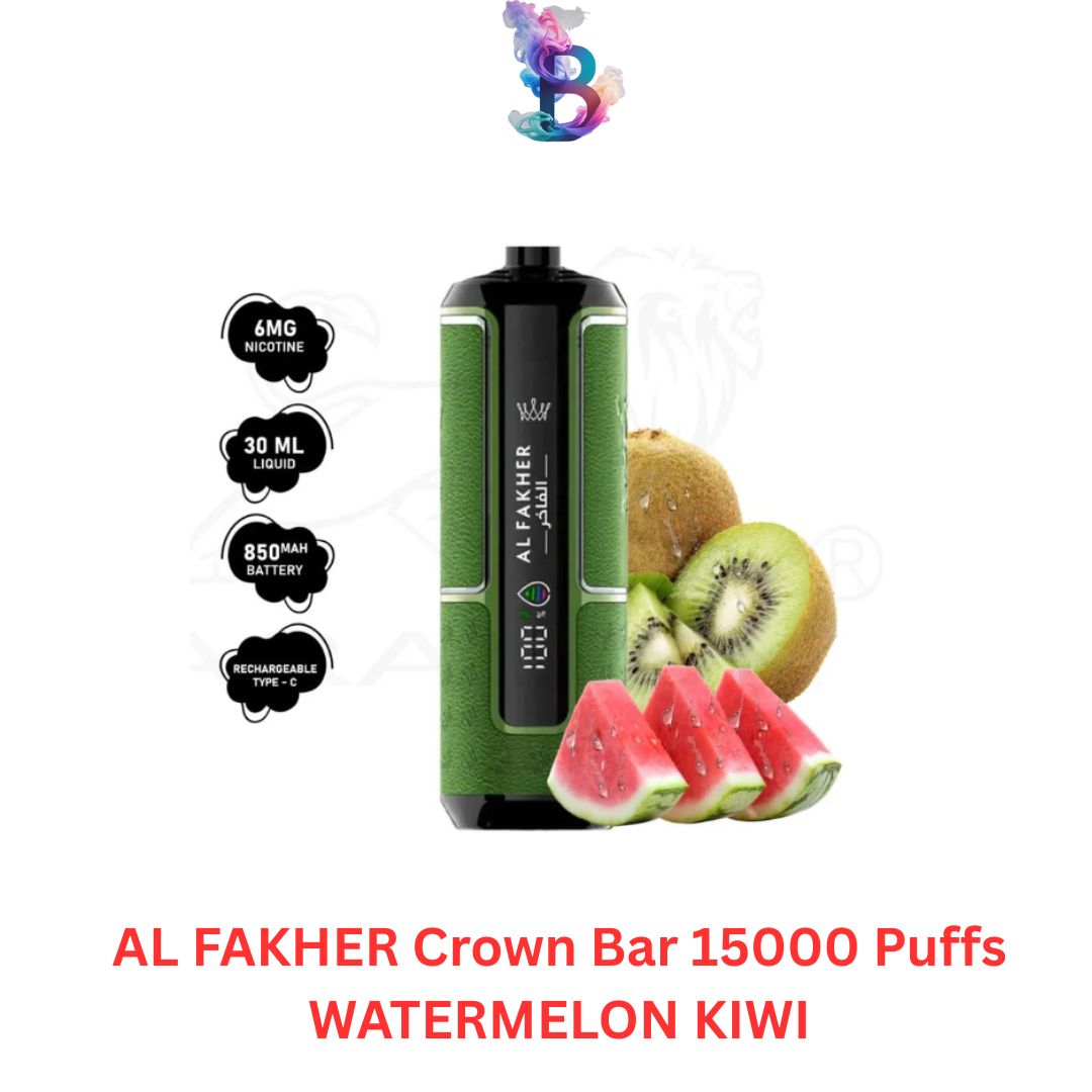 Experience a refreshing burst of flavor with the Al Fakher Crown Bar 15000 Puffs Watermelon Kiwi Disposable Vape — a true masterpiece for vape enthusiasts seeking taste, performance, and longevity in one elegant device. Combining the juicy sweetness of watermelon with the tangy zest of kiwi, this vape offers a perfectly balanced tropical flavor that keeps you refreshed all day long. With a massive 15000 puff capacity, advanced mesh coil technology, and a sleek design, the Crown Bar ensures a smooth, consistent vaping experience from the first puff to the last.