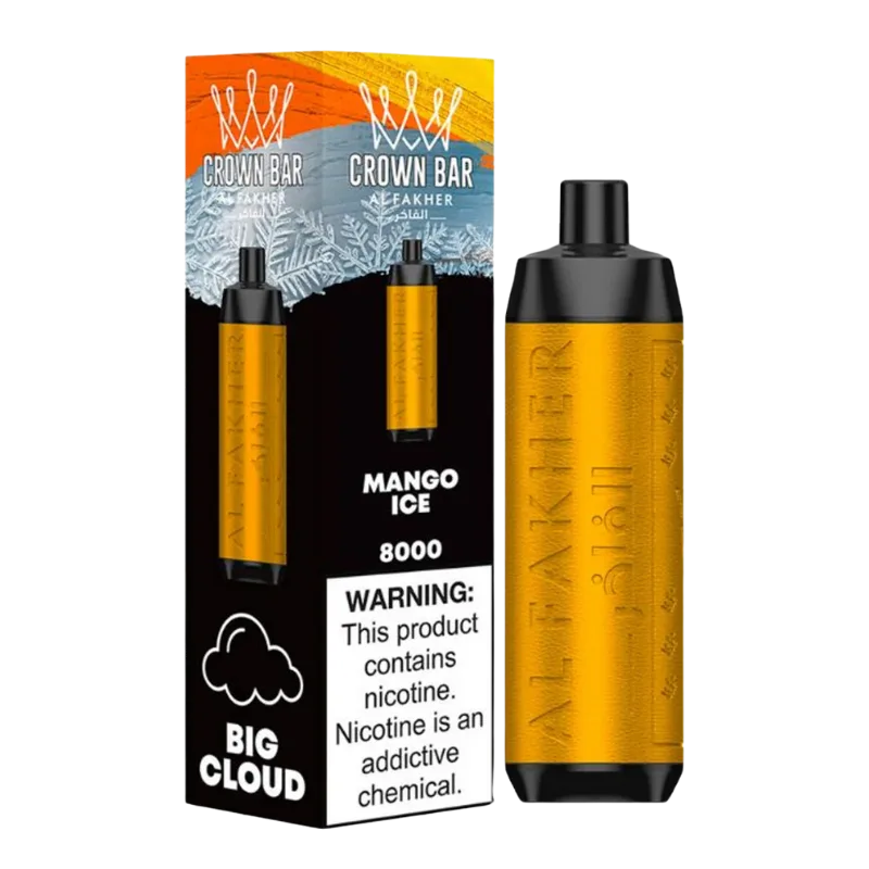 Experience a refreshing burst of tropical flavor with the AL FAKHER Crown Bar Pro 8000 Puffs Mango Ice Disposable Vape. Designed for long-lasting satisfaction and smooth performance, this device perfectly blends juicy mango sweetness with a cool icy finish. With its sleek design, powerful battery, and advanced coil technology, it’s an ideal choice for vapers who enjoy rich, consistent flavors and effortless convenience. Whether you’re relaxing at home or on the go, this vape delivers a smooth and flavorful draw every time.